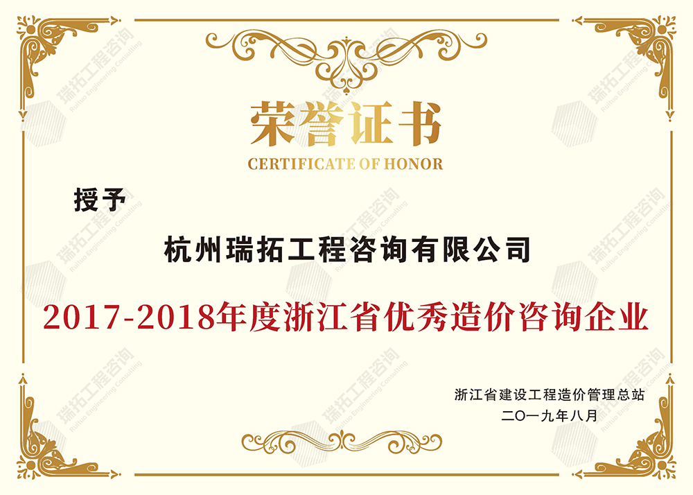 浙江省工程造價(jià)咨詢優(yōu)秀企業(yè)