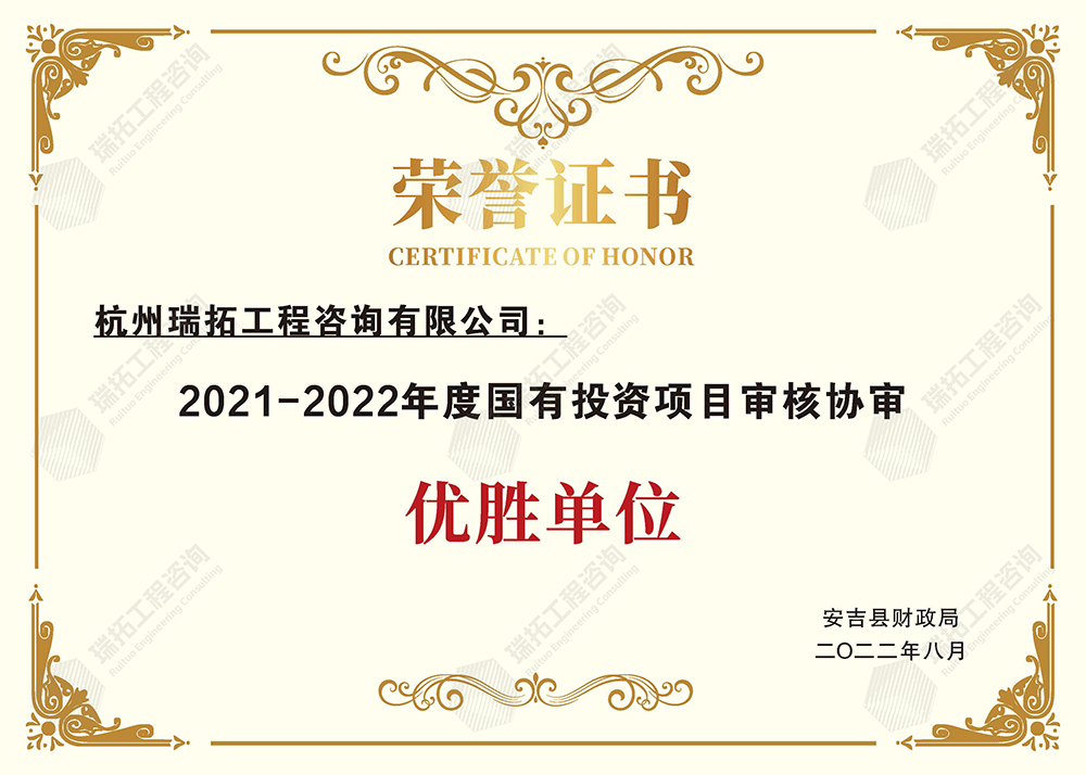 2021-2022年度國(guó)有投資項(xiàng)目審核協(xié)審優(yōu)勝單位(安吉)