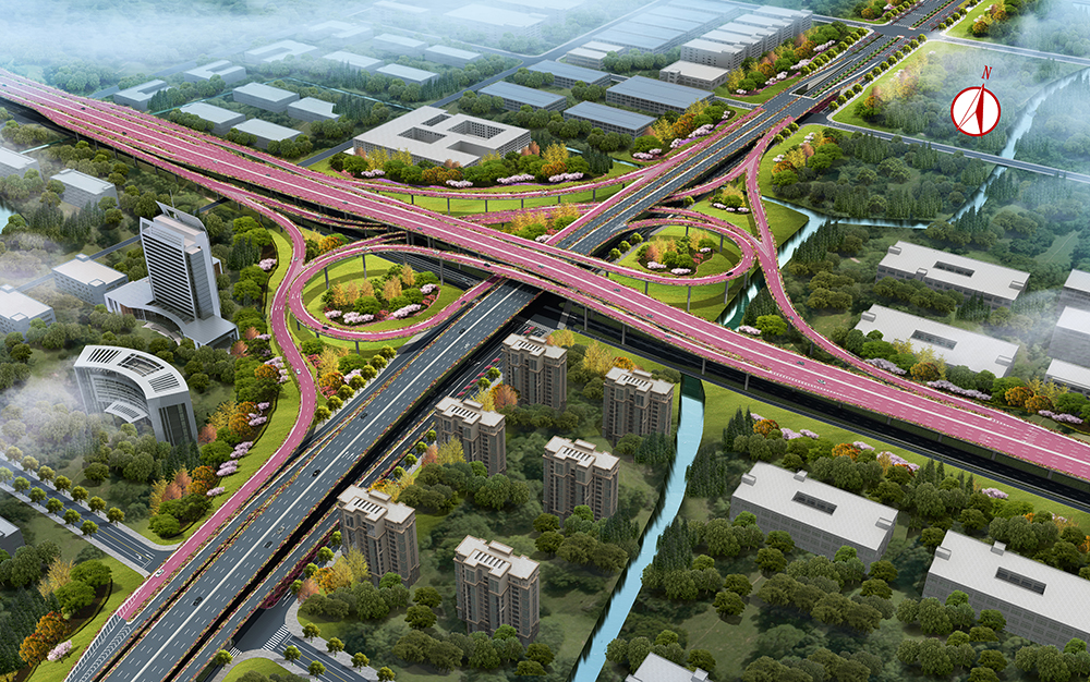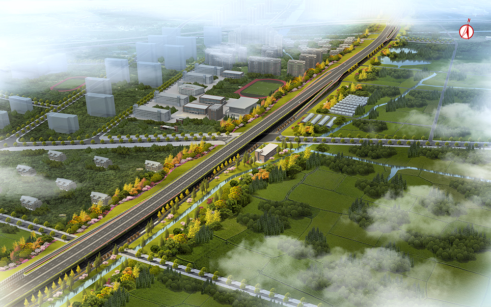 項目起點位于世紀(jì)大道與臨東路交叉口南側(cè),順接?xùn)|湖高架路預(yù)留跳水平臺,沿現(xiàn)狀臨東路與新絲路布置,終點位于新絲路與五洲路交叉口,高架預(yù)留跳水平臺,遠期規(guī)劃至杭州中環(huán)。項目全長約5.4公里,采用高架快速路+地面主干道的建設(shè)形式,主線高架和地面道路均采用雙向6車道規(guī)模,主線高架設(shè)計車速80km/h,高架橋標(biāo)準(zhǔn)寬度為25米,地面道路設(shè)計車速50km/h,臨東路段地面道路標(biāo)準(zhǔn)寬度42米,新絲路段地面道路標(biāo)準(zhǔn)寬度50米。