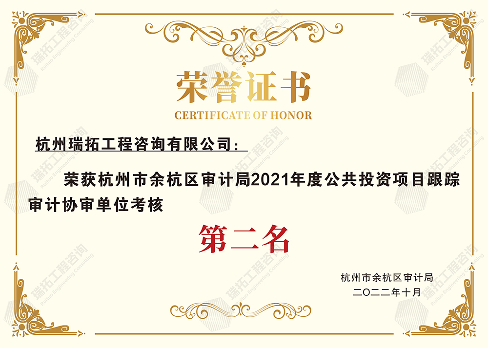 杭州市余杭區(qū)審計(jì)局2022年度公共投資項(xiàng)目跟蹤審計(jì)協(xié)審單位考核第二名